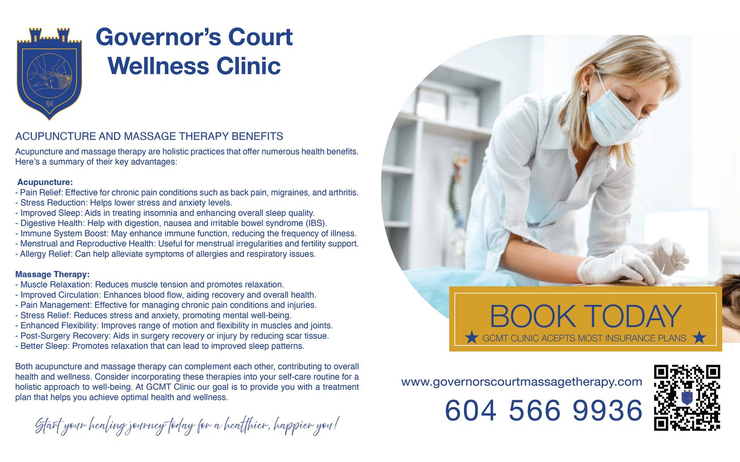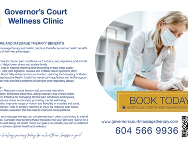 Governor's Court Massage Therapy Clinic offers a comprehensive approach to healing, addressing physical, mental, and emotional needs. Our blend of modern science and traditional methods ensures the best care possible.